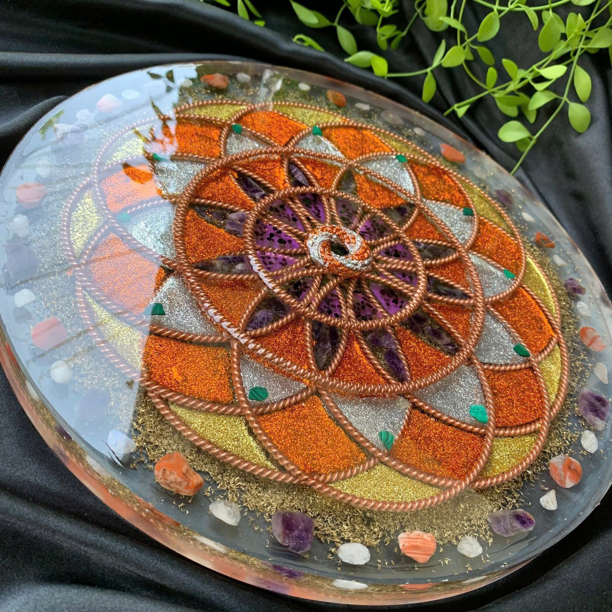 Energy Charging & Meditation Plate with Quartz Crystals (Large Size)