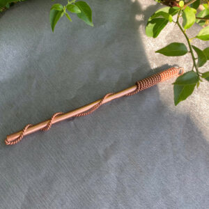 Made from pure copper, the wand may tarnish over time, but this does not affect its energetic properties. You can restore its shine with vinegar or lemon.