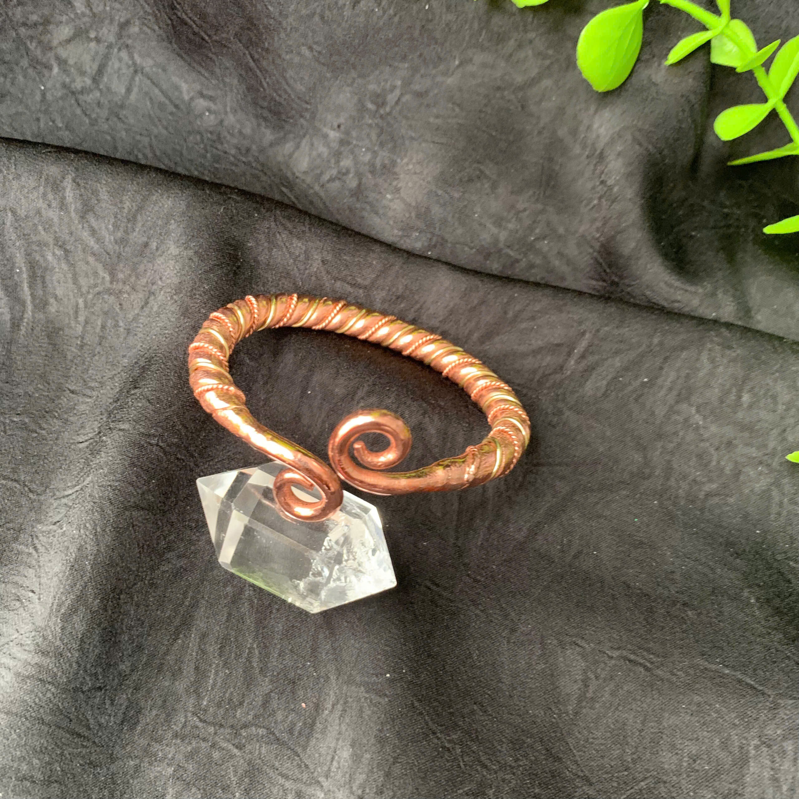 The Twisted Copper Tensor Ring (also known as a copper tensor ring) is the pure version, made entirely from pure red copper wire tightly twisted using a special technique, without any attached quartz crystals or other gemstones. They typically come in closed forms (bracelet, necklace) or simple open designs, based on the technology developed by Slim Spurling — twisting the copper wire to precise lengths (using sacred measurement units known as Cubits, such as Sacred Cubit 144 MHz, Lost Cubit 177 MHz, etc.).
